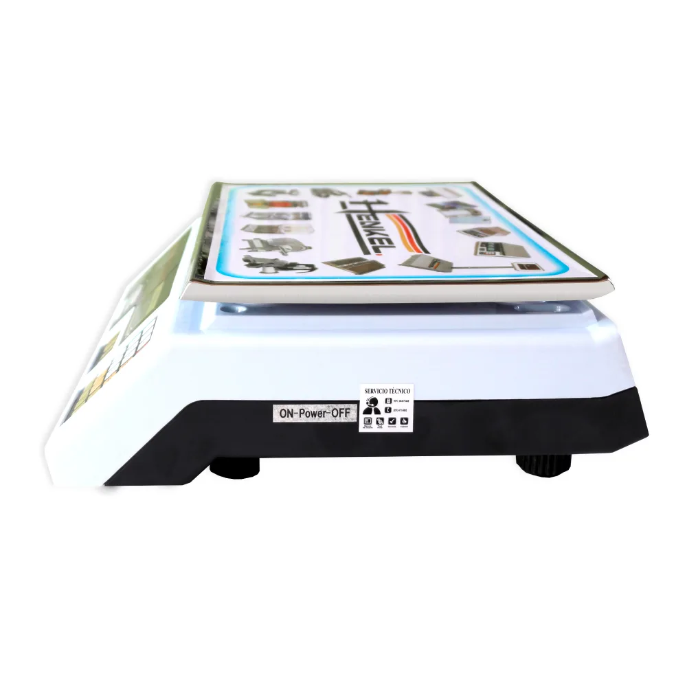 - Balanza electrónica diseñada para comercios y mercados, ofreciendo un pesaje preciso y eficiente.